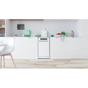 Karakteristike ove Indesit mašine za pranje posuđa su: 45 cm širine s izvanrednim rasporedom mjesta, u kombinaciji s manjom i kompaktnom veličinom kako bi mogli uživati u prostoru koji vam je potreban, izvan i unutar vašeg uređaja. Izvanredna, smanjena potrošnja energije i učinkovito iskorišten prostor te kompaktni dizajn. Bijela boja. Inovativna tehnologija koja osigurava iznimno tih performans, za veoma tihi uređaj. Prikladni digitalni brojač vremena koji će vas obavijestiti o završetku ciklusa pranja.